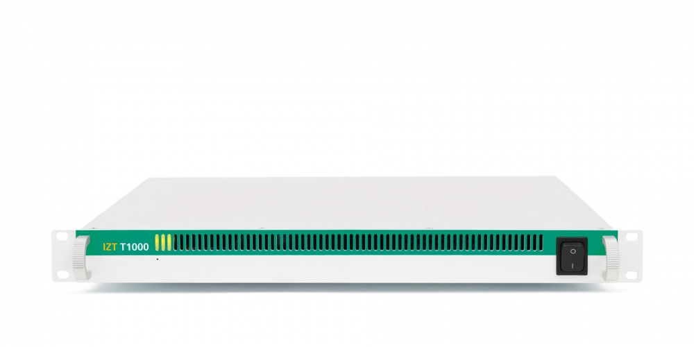 The IZT T1000 Broadcast Modulator is based on a fully reconfigurable universal hardware platform. The modulation is software-defined, allowing the platform to be upgraded to other broadcast standards. All input, modulation and RF parameters can be controlled via LAN using either the web interface or SCPI commands.