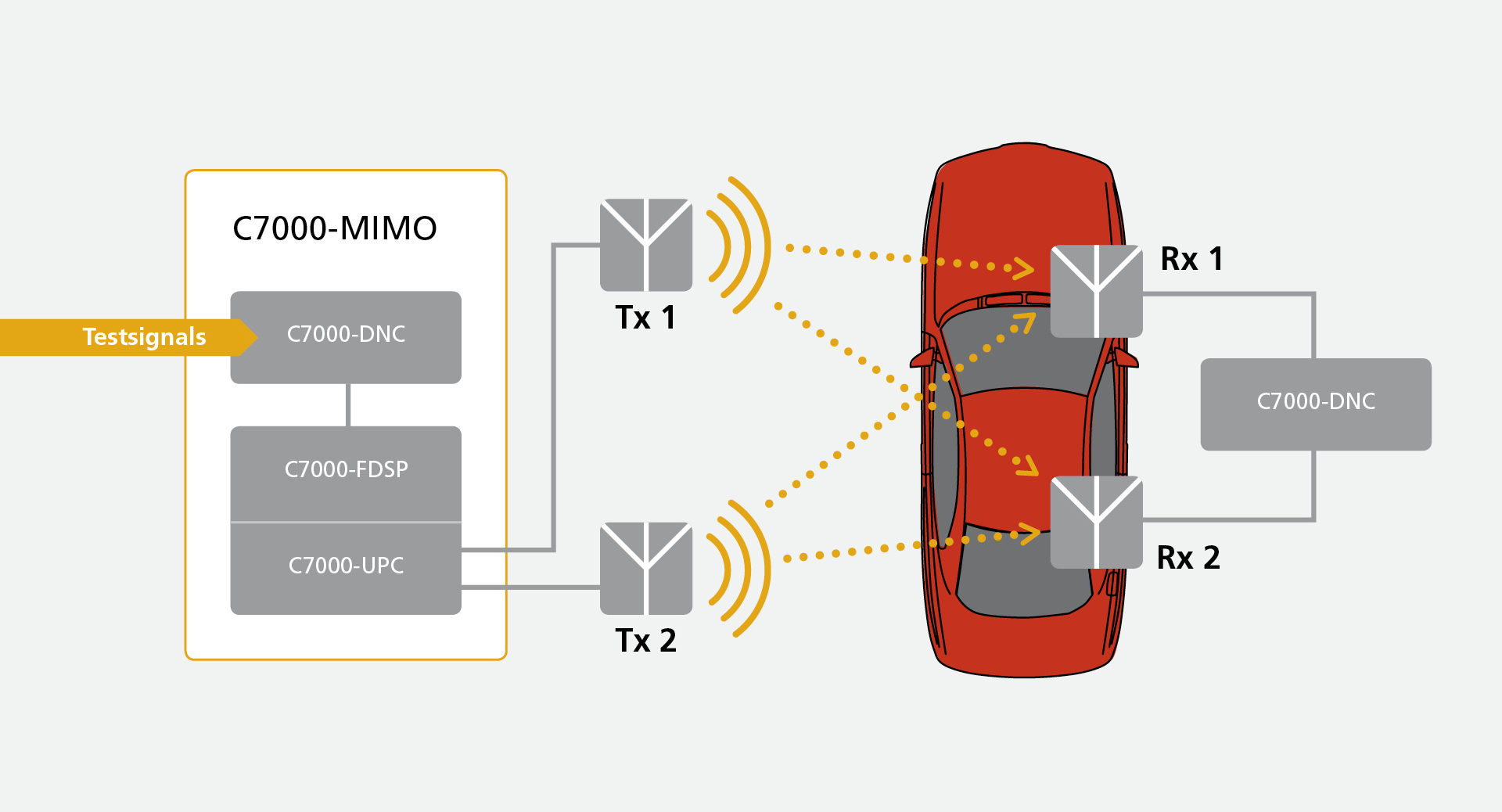 Antenna and communication systems of large test objects such as vehicles can be tested with a much lower number of input and output channels due to the Wireless Cable approach. In cooperation with the Fraunhofer Gesellschaft, the largest European research organization for application-oriented research, IZT has developed a test platform for Mobile Communication Systems as part of the “Facility for Over the Air Research and Testing” (FORTE) test facility. The IZT C7000 emulator provides the necessary resources for wide-band compensation of the chamber characteristics and an arbitrary channel model.